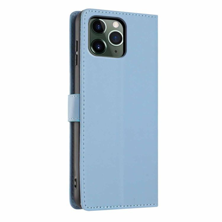 For iPhone 11 Pro Tree Cat Embossed Flip Vegan Leather Phone Case(Sky Blue)