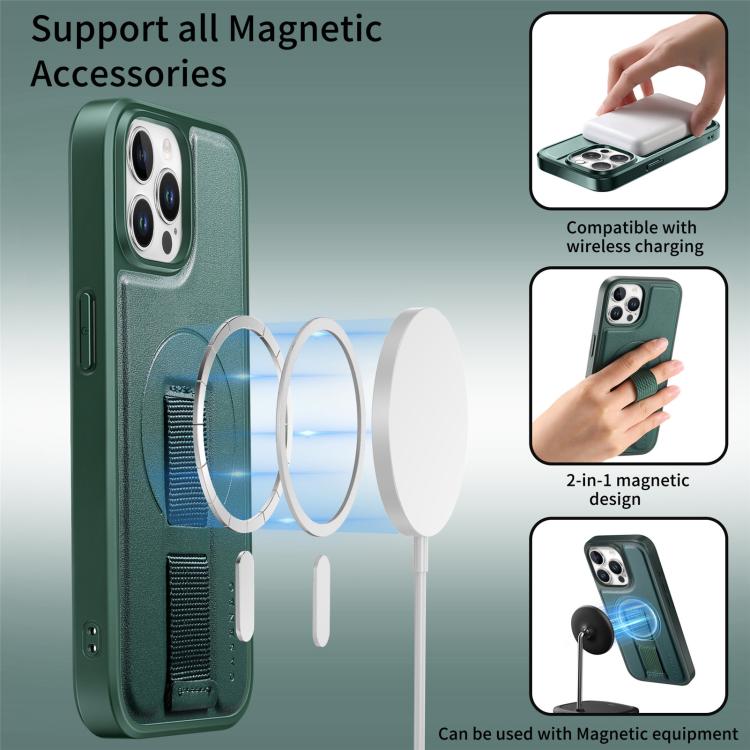 For iPhone 12 / 12 Pro CaseNeo Finger Grip Wristband MagSafe Back Phone Case(Green)