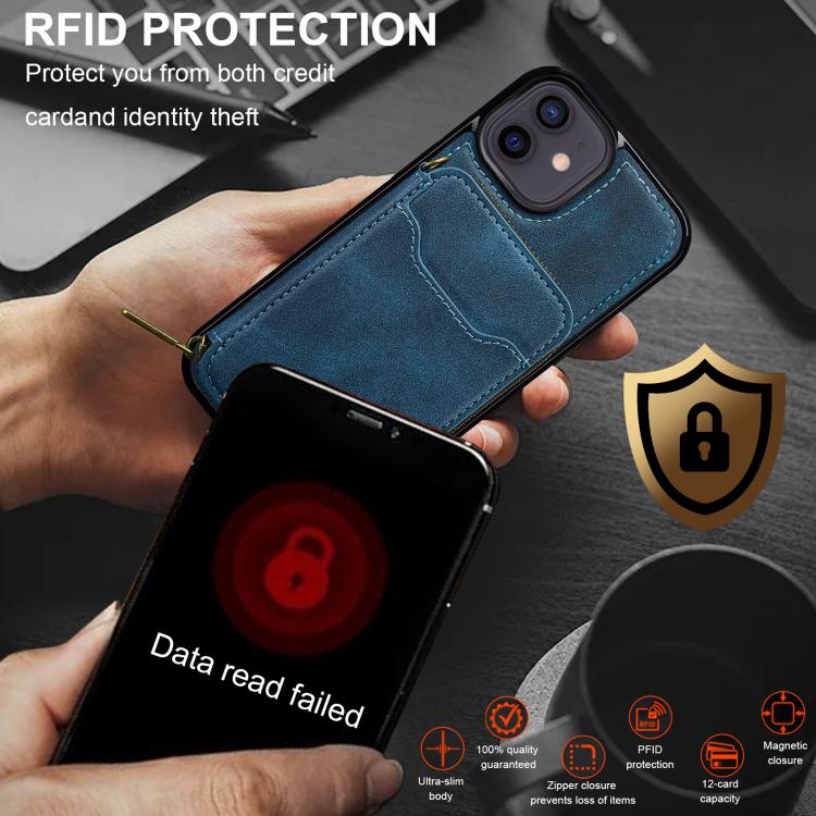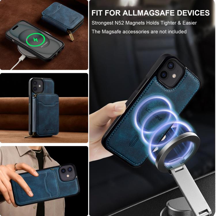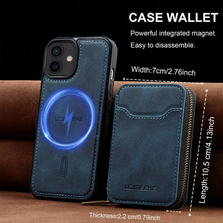 For iPhone 12 / 12 Pro LC.IMEEKE L6 Series Zipper Card Bag MagSafe Magnetic Phone Case(Blue)