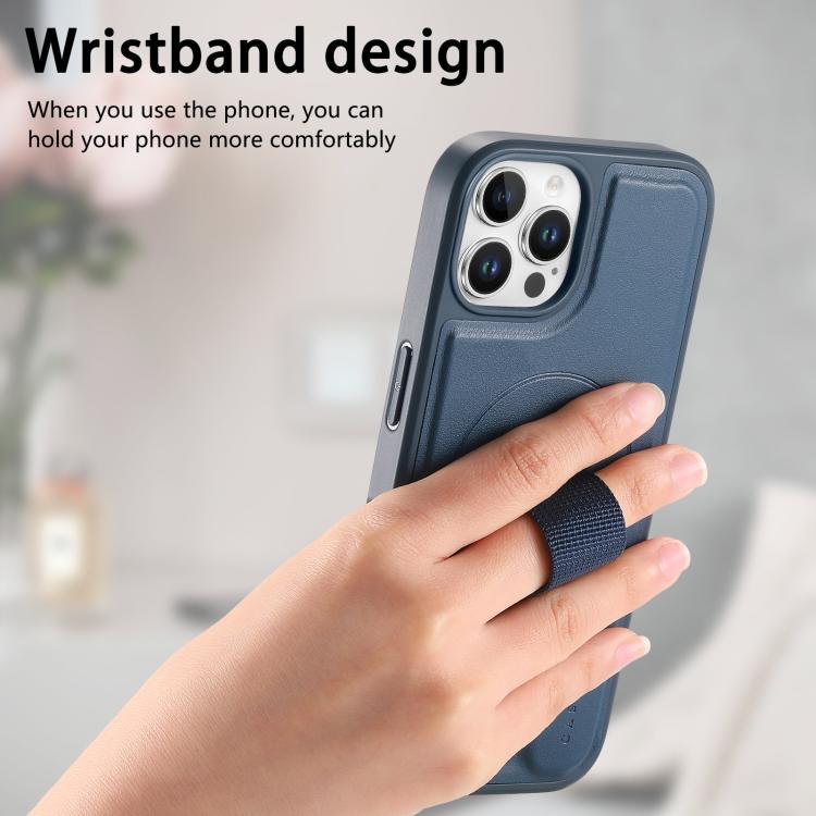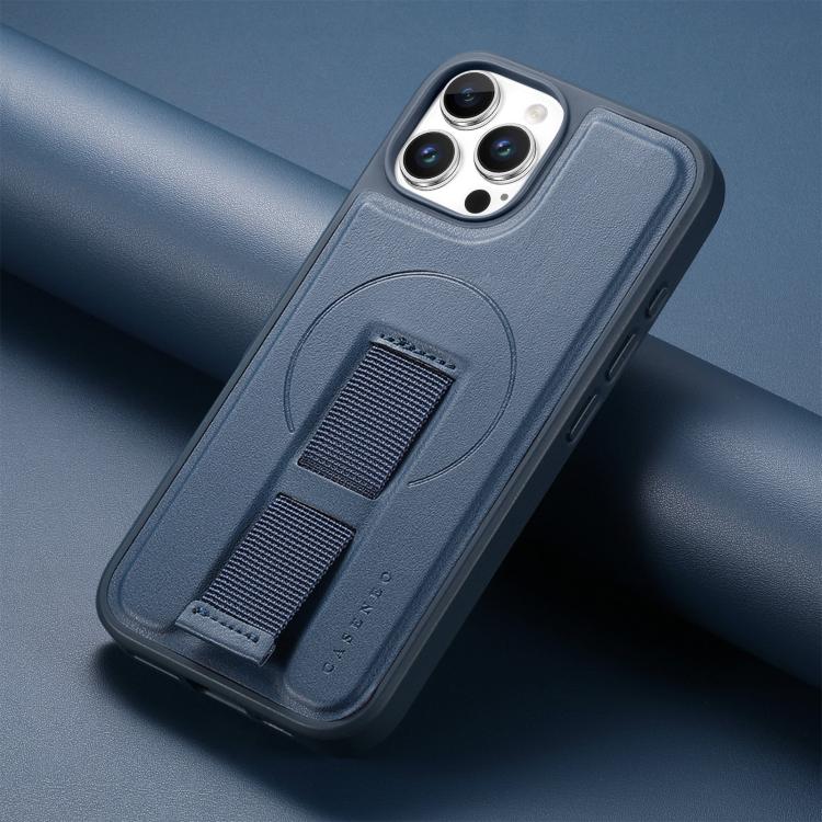 For iPhone 12 Pro Max CaseNeo Finger Grip Wristband MagSafe Back Phone Case(Blue)