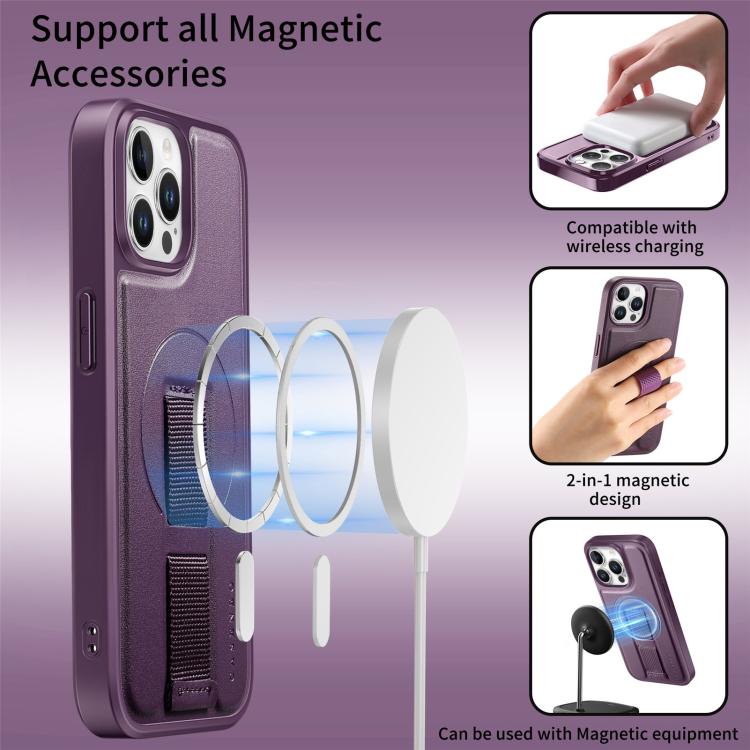 For iPhone 12 Pro Max CaseNeo Finger Grip Wristband MagSafe Back Phone Case(Purple)