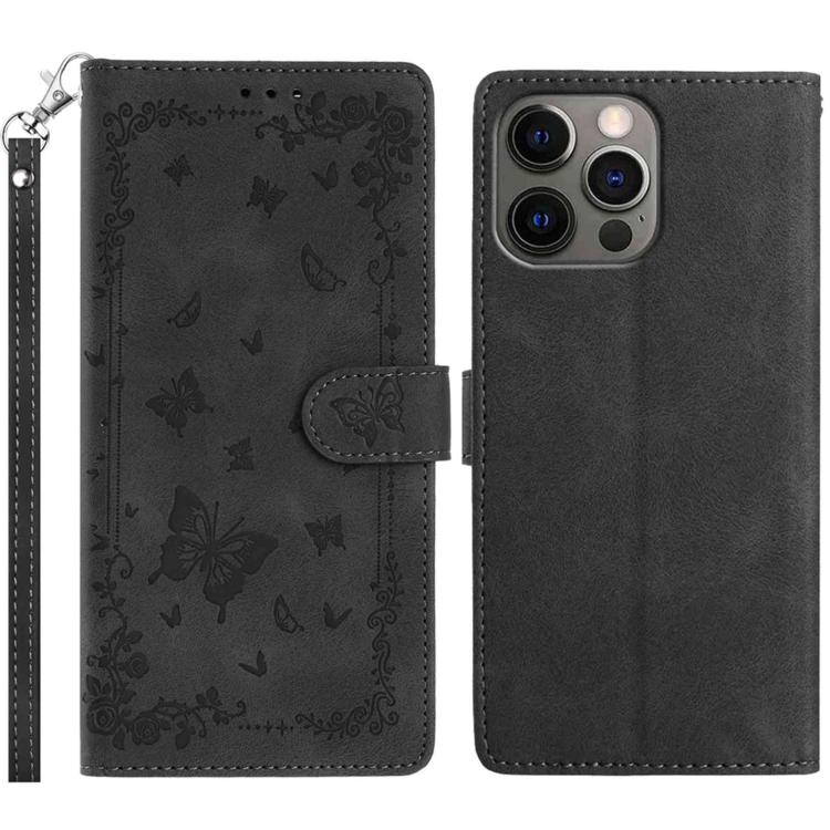 For iPhone 12 Pro Max Secret Garden Butterfly Pattern Leather Phone Case(Black)