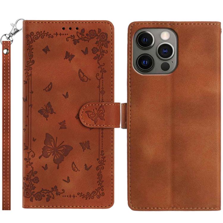 For iPhone 12 Pro Max Secret Garden Butterfly Pattern Leather Phone Case(Brown)