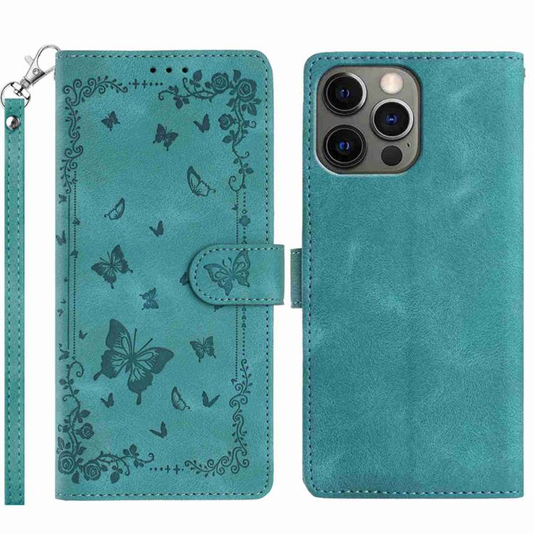 For iPhone 12 Pro Max Secret Garden Butterfly Pattern Leather Phone Case(Green)
