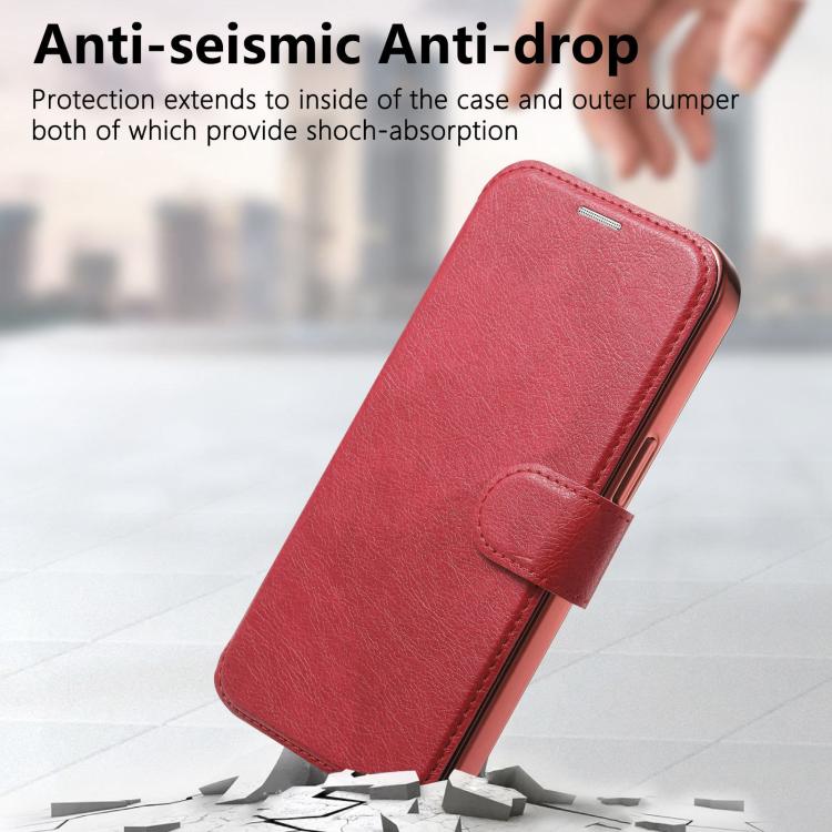 For iPhone 12 Pro Max Splitable Electroplated MagSafe RFID Anti-theft Leather Phone Case with Lens Film(Red)