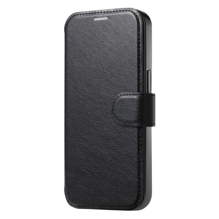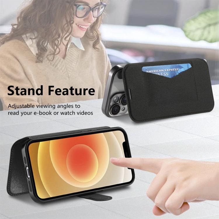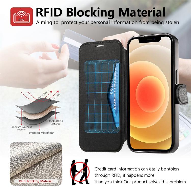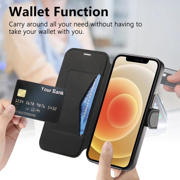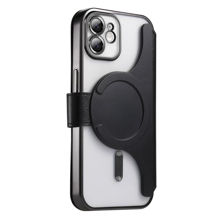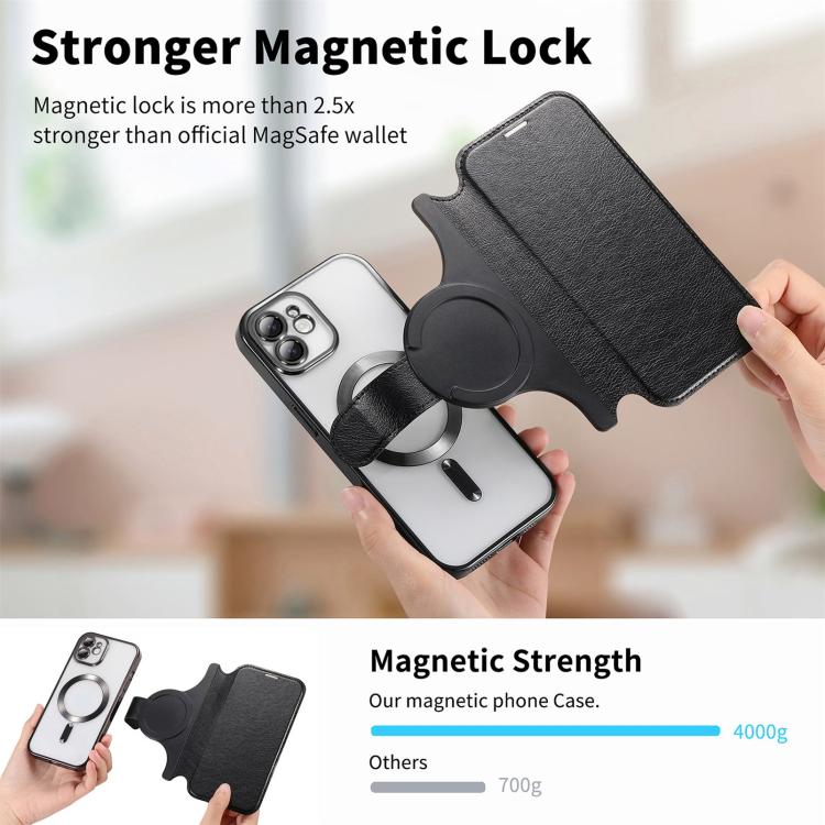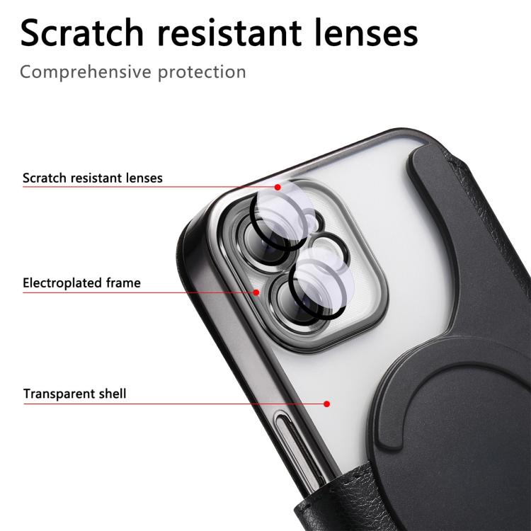 For iPhone 12 Splitable Electroplated MagSafe RFID Anti-theft Leather Phone Case with Lens Film(Black)