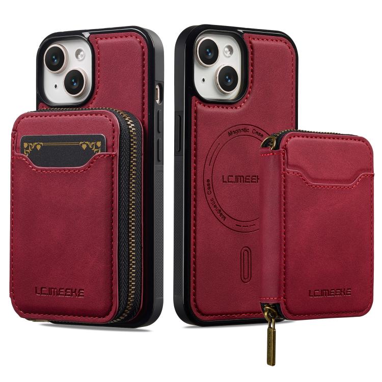 For iPhone 13 mini LC.IMEEKE L6 Series Zipper Card Bag MagSafe Magnetic Phone Case(Red)
