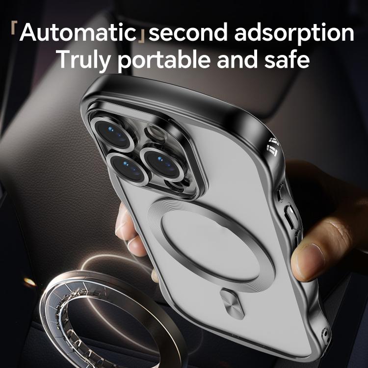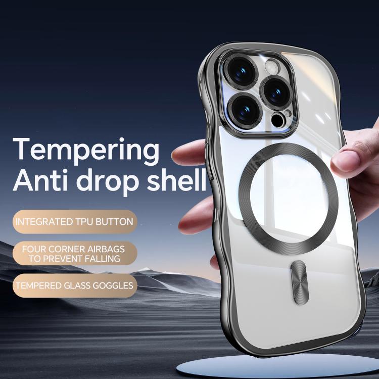For iPhone 13 Pro Big Wave Electroplating MagSafe Magnetic Phone Case(Black)