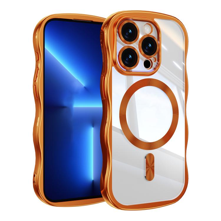 For iPhone 13 Pro Big Wave Electroplating MagSafe Magnetic Phone Case(Orange)