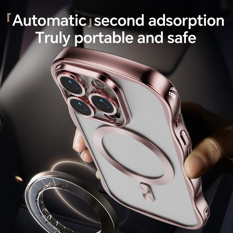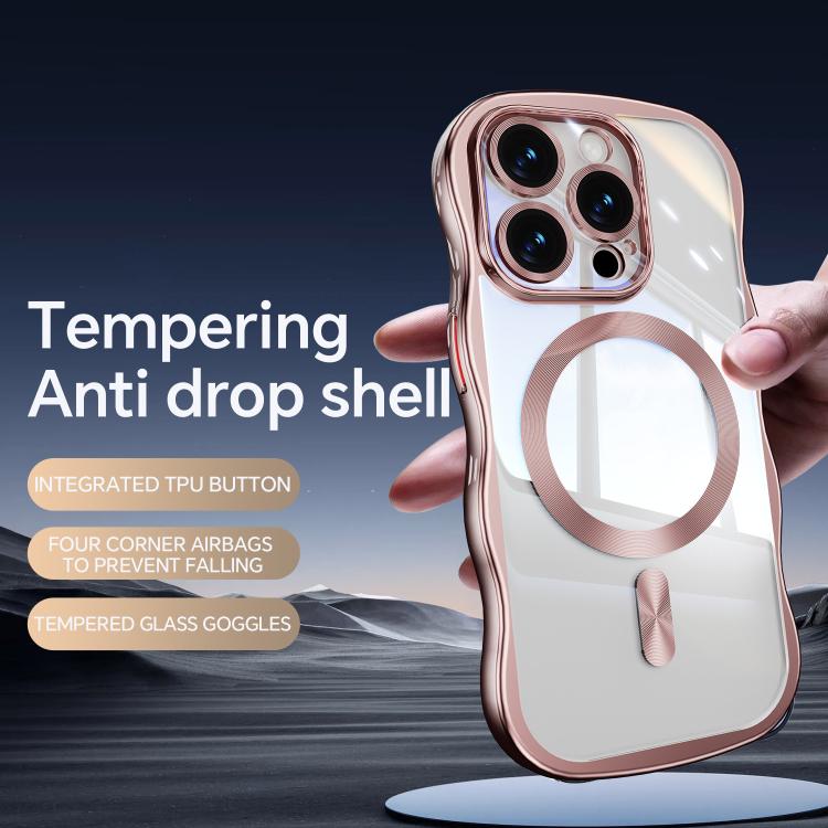 For iPhone 13 Pro Big Wave Electroplating MagSafe Magnetic Phone Case(Pink)
