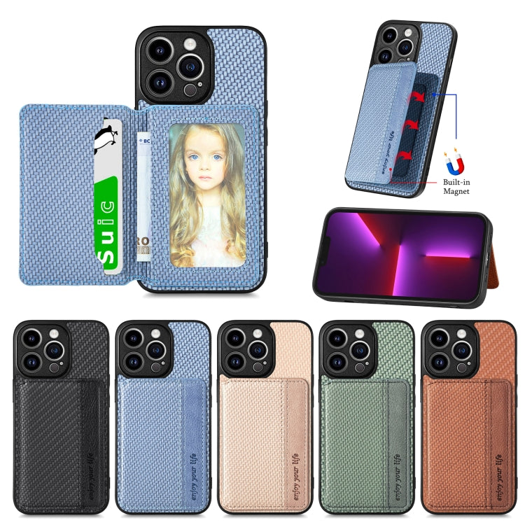 For iPhone 13 Pro Carbon Fiber Magnetic Card Bag Phone Case(Blue)