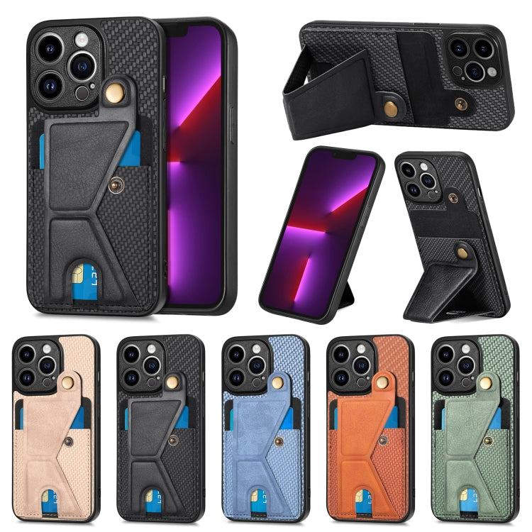 For iPhone 13 Pro Carbon Fiber Wallet Flip Card K-shaped Holder Phone Case(Black)