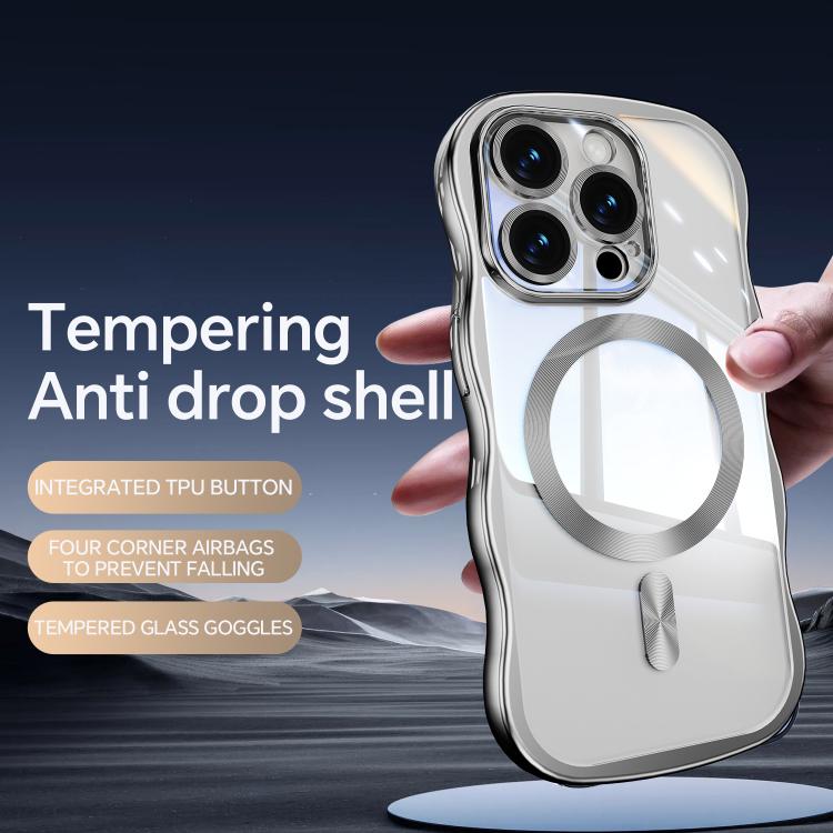 For iPhone 13 Pro Max Big Wave Electroplating MagSafe Magnetic Phone Case(Silver)