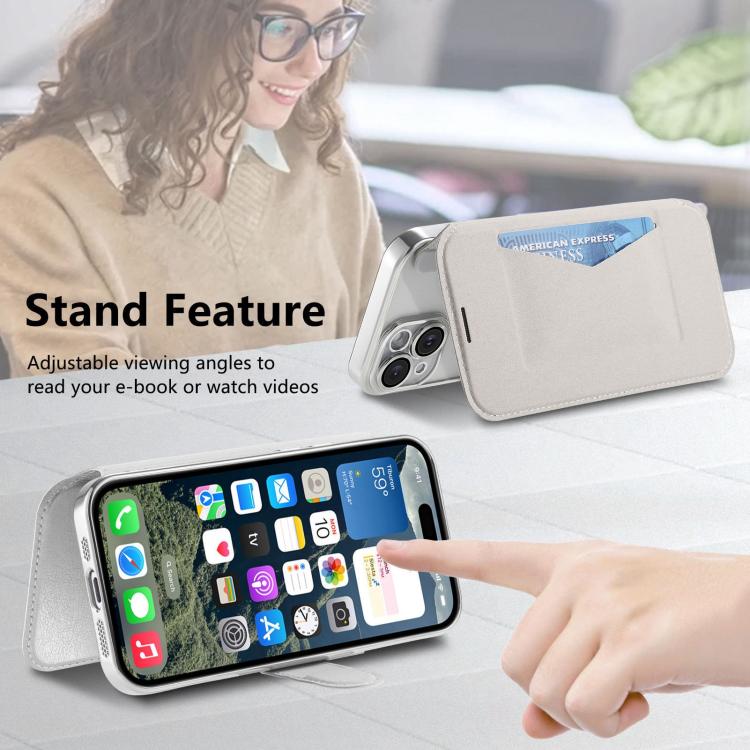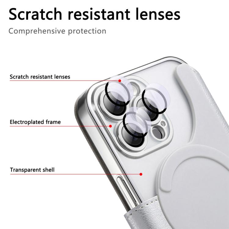 For iPhone 13 Pro Max Splitable Electroplated MagSafe RFID Anti-theft Leather Phone Case with Lens Film(Silver)