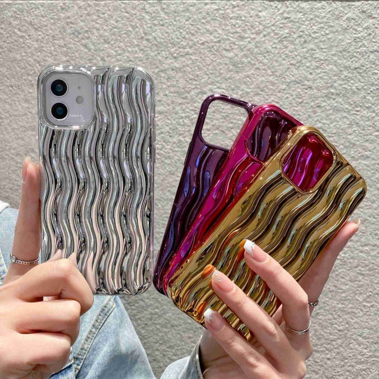 For iPhone 13 Pro Plating 3D Water Wave Texture Phone Case(Gold)