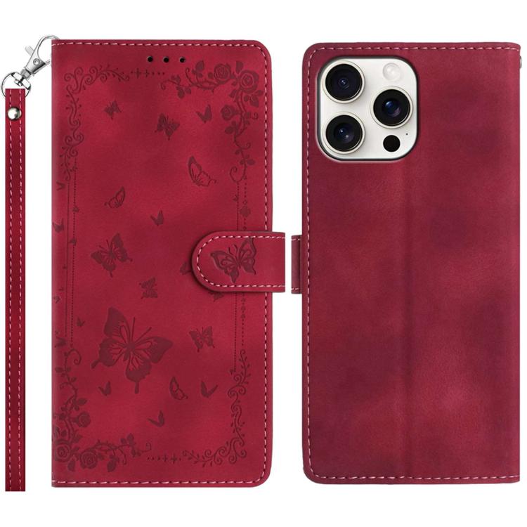 For iPhone 13 Pro Secret Garden Butterfly Pattern Leather Phone Case(Red)