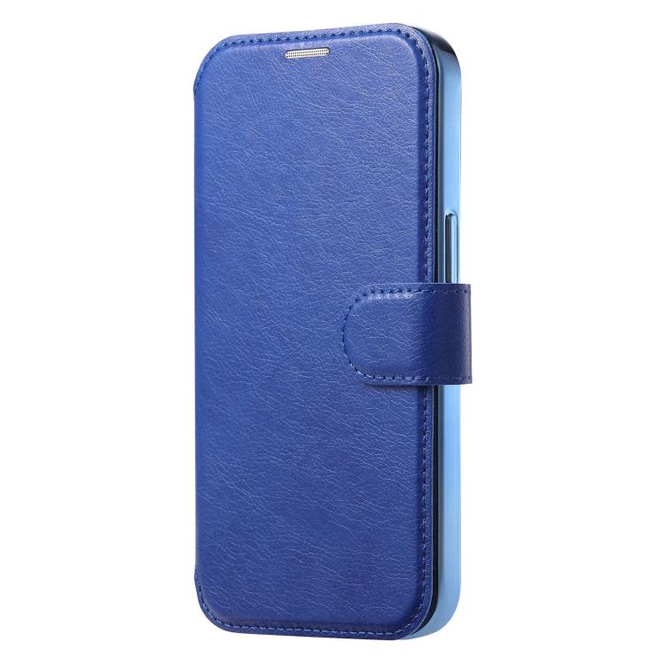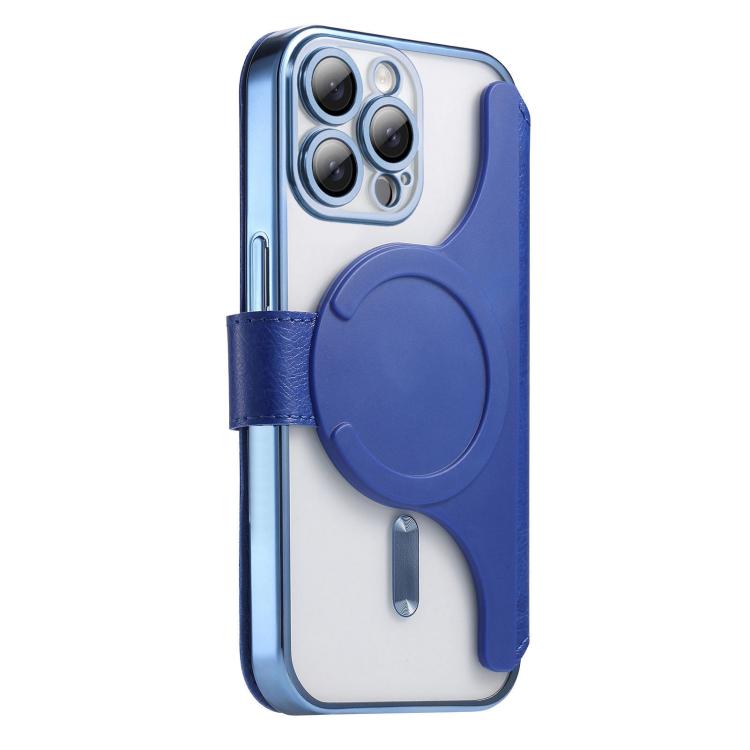 For iPhone 13 Pro Splitable Electroplated MagSafe RFID Anti-theft Leather Phone Case with Lens Film(Blue)