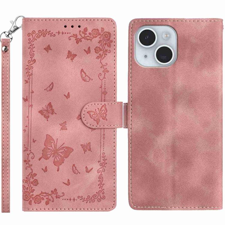 For iPhone 13 Secret Garden Butterfly Pattern Leather Phone Case(Pink)
