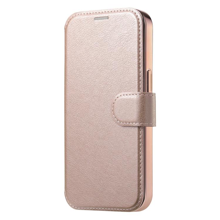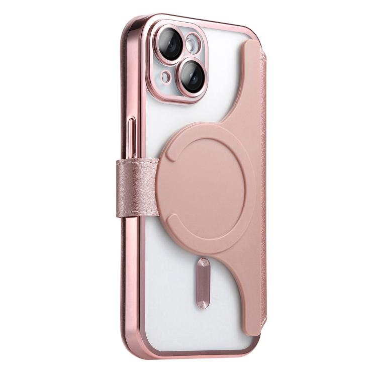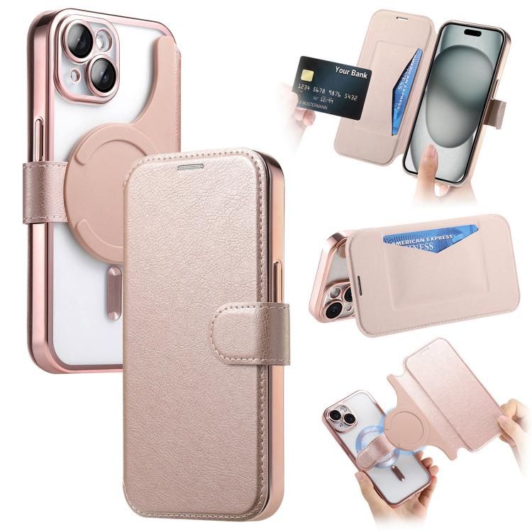 For iPhone 13 Splitable Electroplated MagSafe RFID Anti-theft Leather Phone Case with Lens Film(Rose Gold)