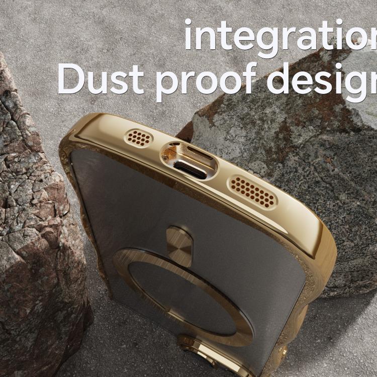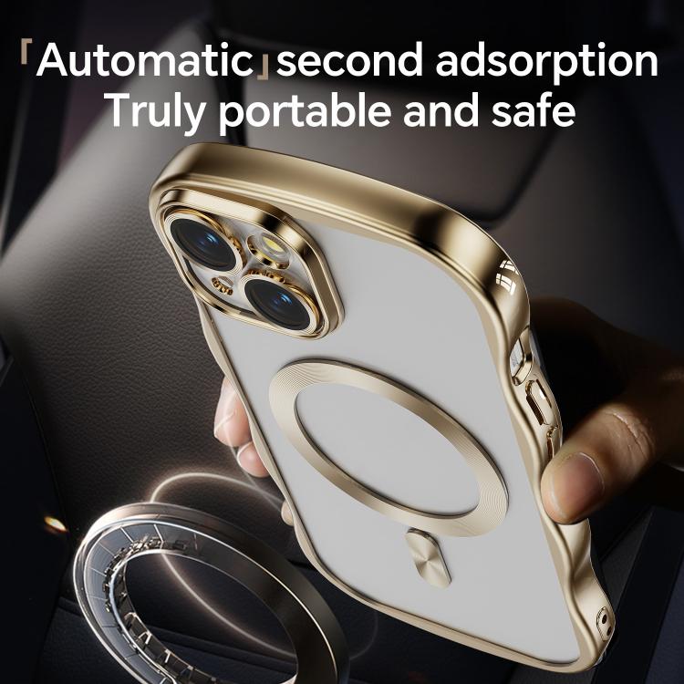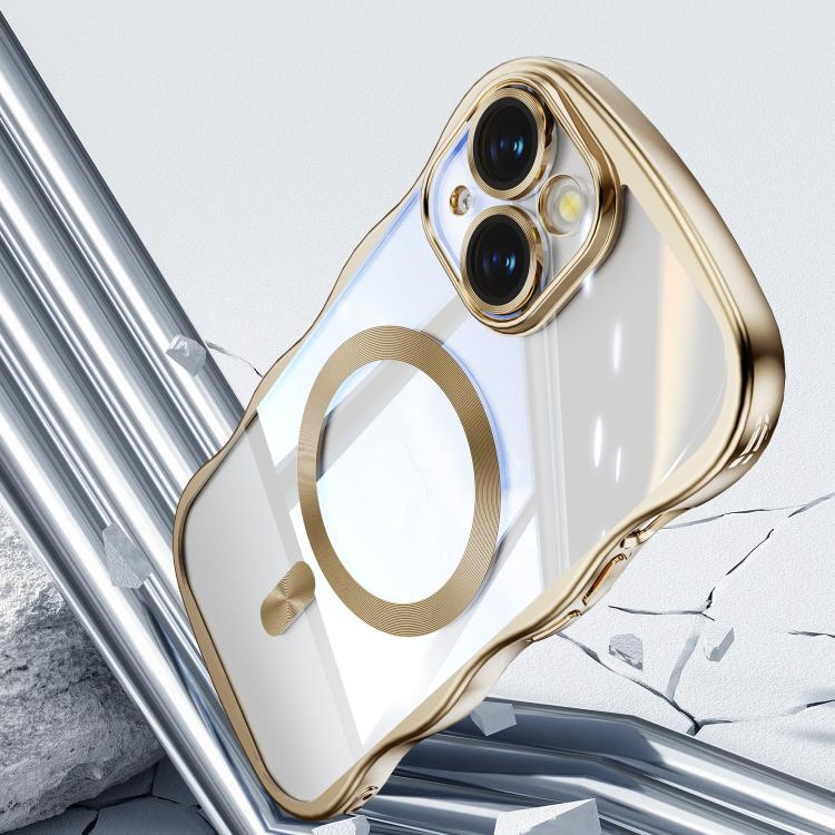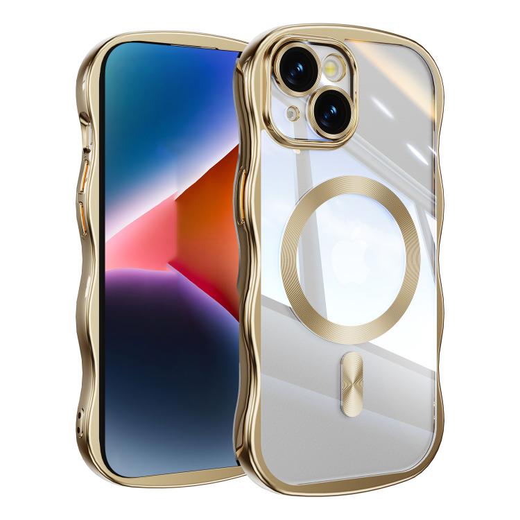 For iPhone 14 Big Wave Electroplating MagSafe Magnetic Phone Case(Gold)