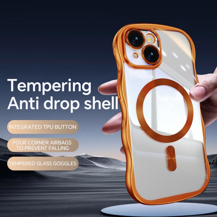For iPhone 14 Big Wave Electroplating MagSafe Magnetic Phone Case(Orange)