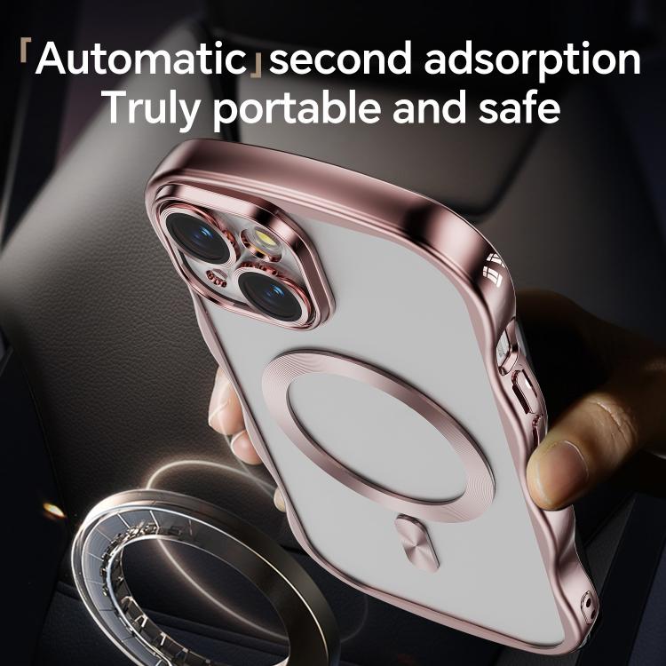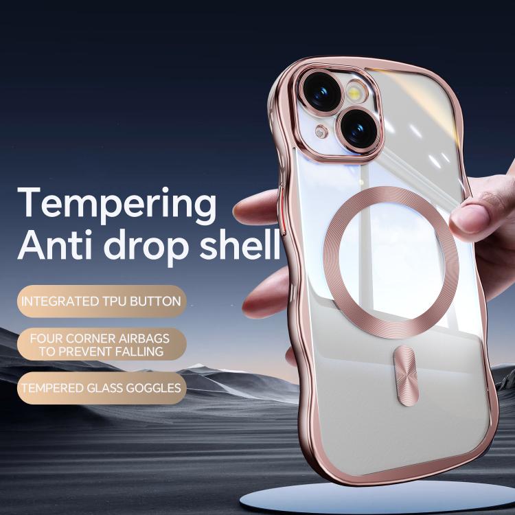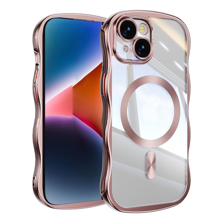 For iPhone 14 Big Wave Electroplating MagSafe Magnetic Phone Case(Pink)