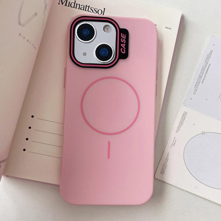 For iPhone 14 Large Hole Solid Color Frame CESA Fine Ring Magsafe Phone Case(Pink)