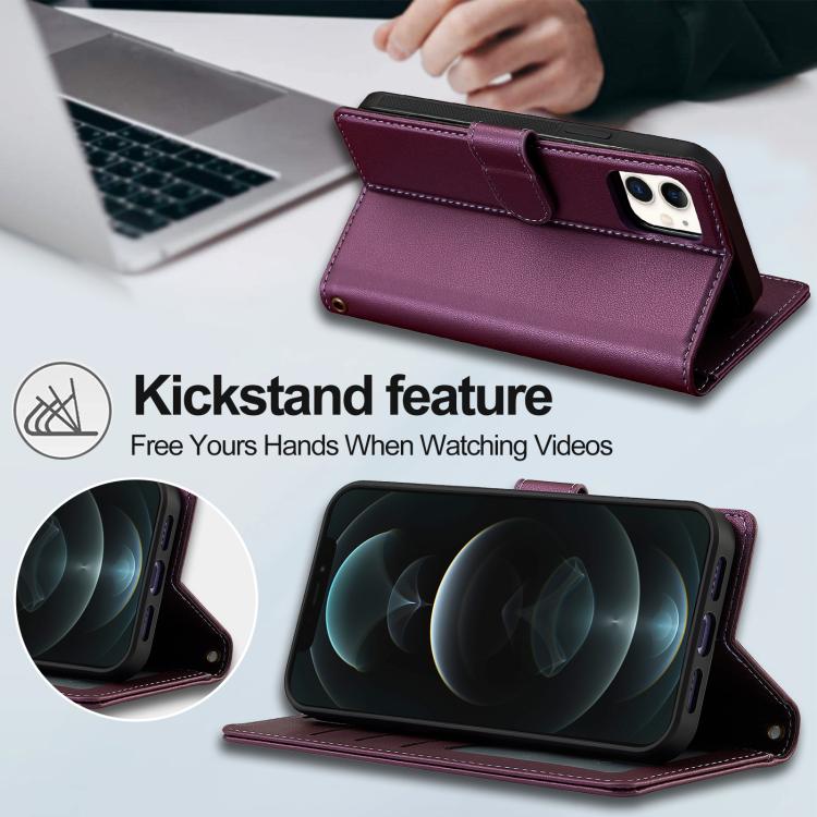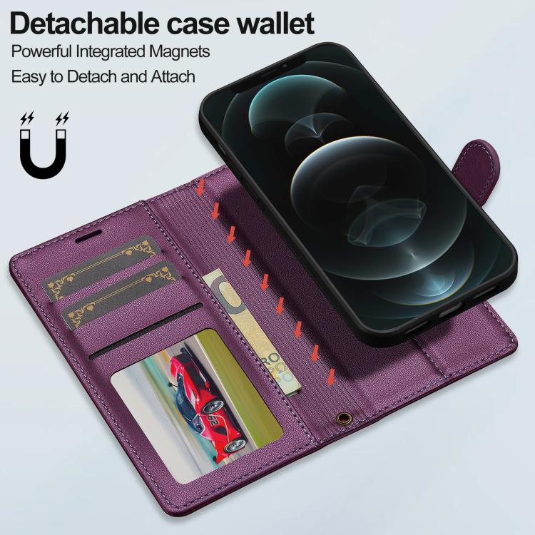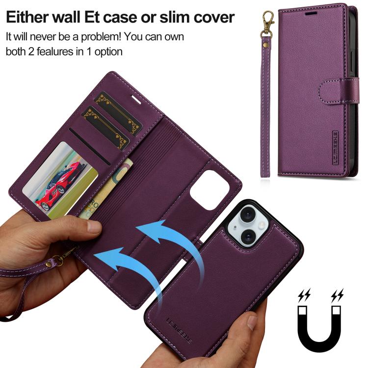 For iPhone 14 Plus LC.IMEEKE L2 Series Detachable Magsafe PU Phone Case with Lanyard(Purple)