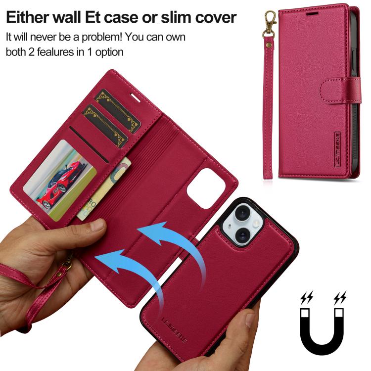 For iPhone 14 Plus LC.IMEEKE L2 Series Detachable Magsafe PU Phone Case with Lanyard(Red)