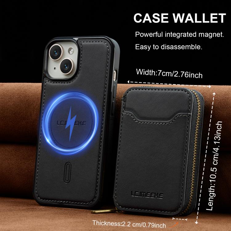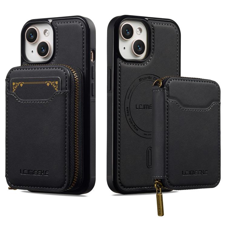 For iPhone 14 Plus LC.IMEEKE L6 Series Zipper Card Bag MagSafe Magnetic Phone Case(Black)