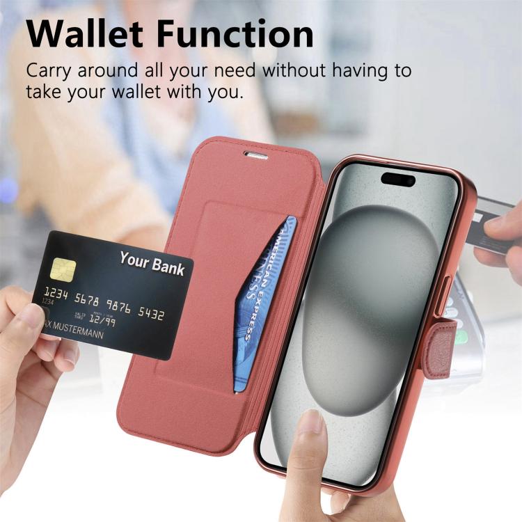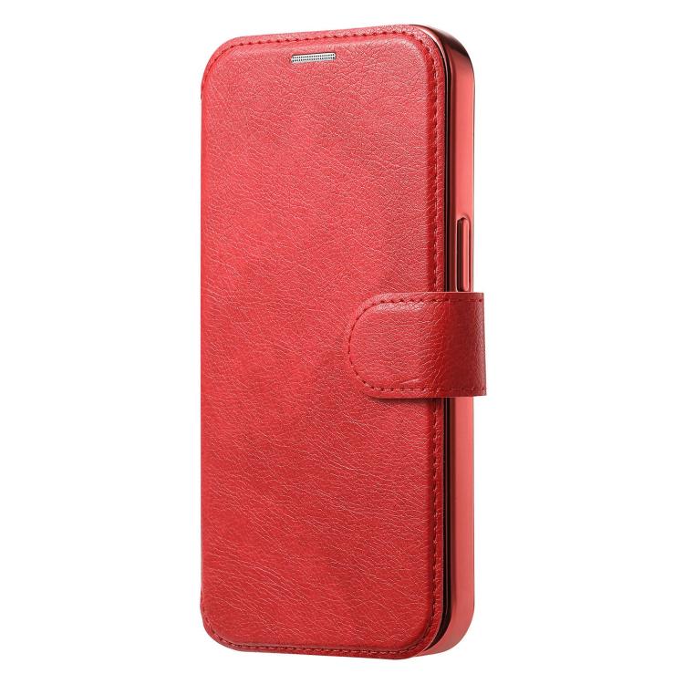 For iPhone 14 Plus Splitable Electroplated MagSafe RFID Anti-theft Leather Phone Case with Lens Film(Red)