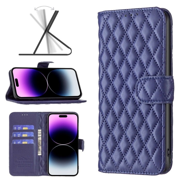 For iPhone 14 Pro Diamond Lattice Wallet Leather Flip Phone Case(Blue)