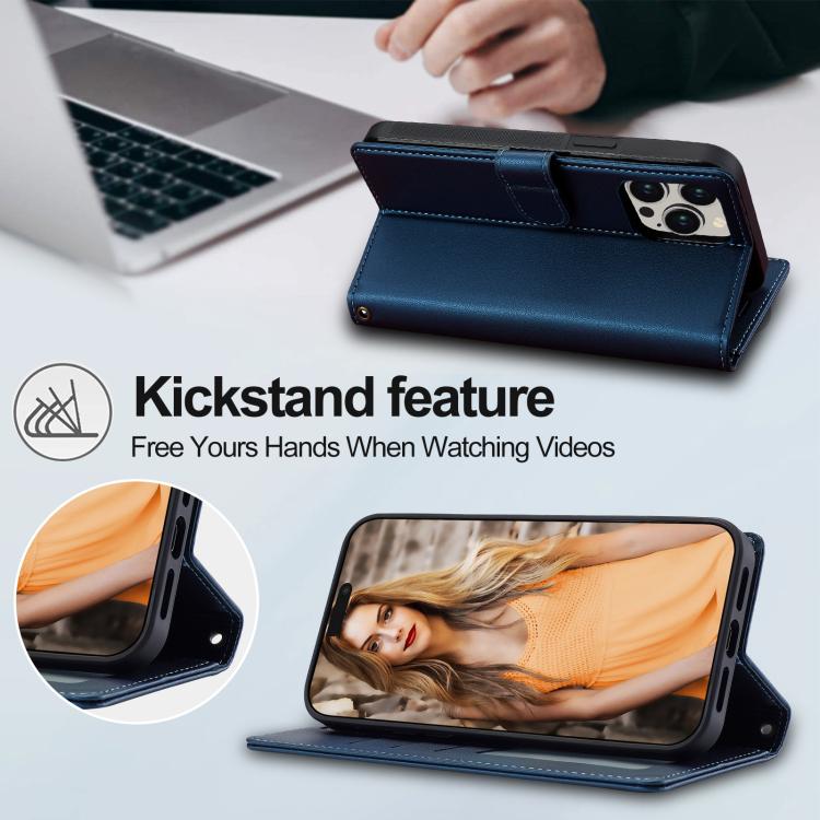For iPhone 14 Pro LC.IMEEKE L2 Series Detachable Magsafe PU Phone Case with Lanyard(Blue)