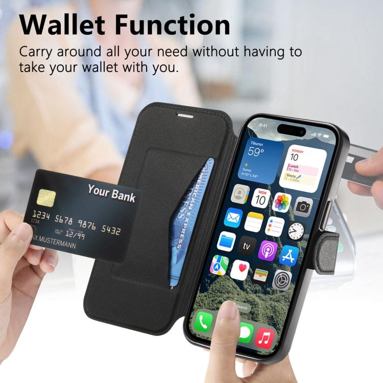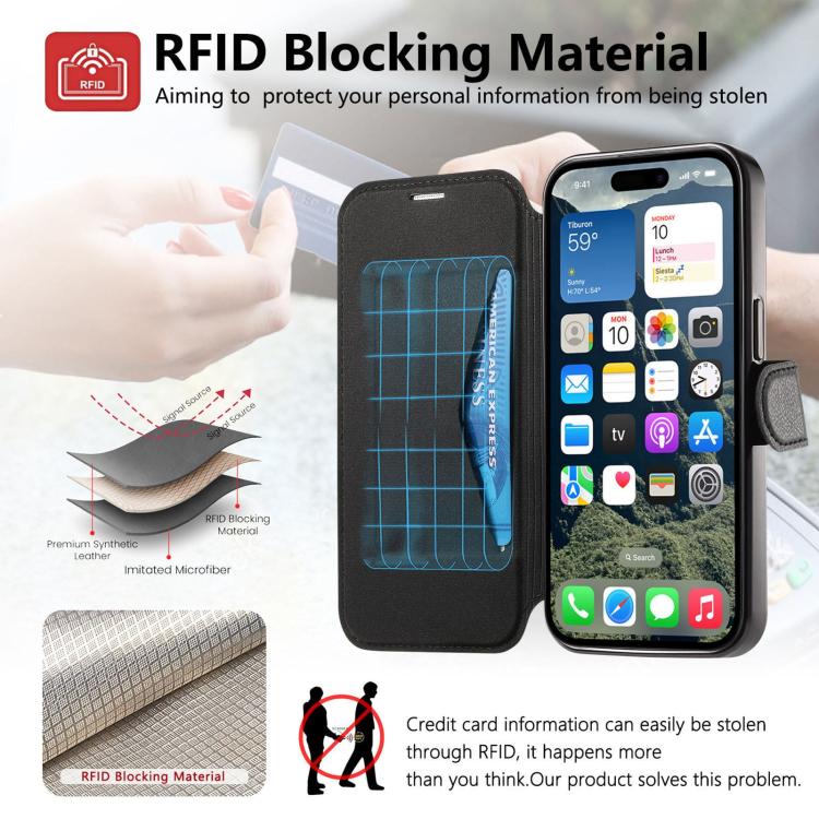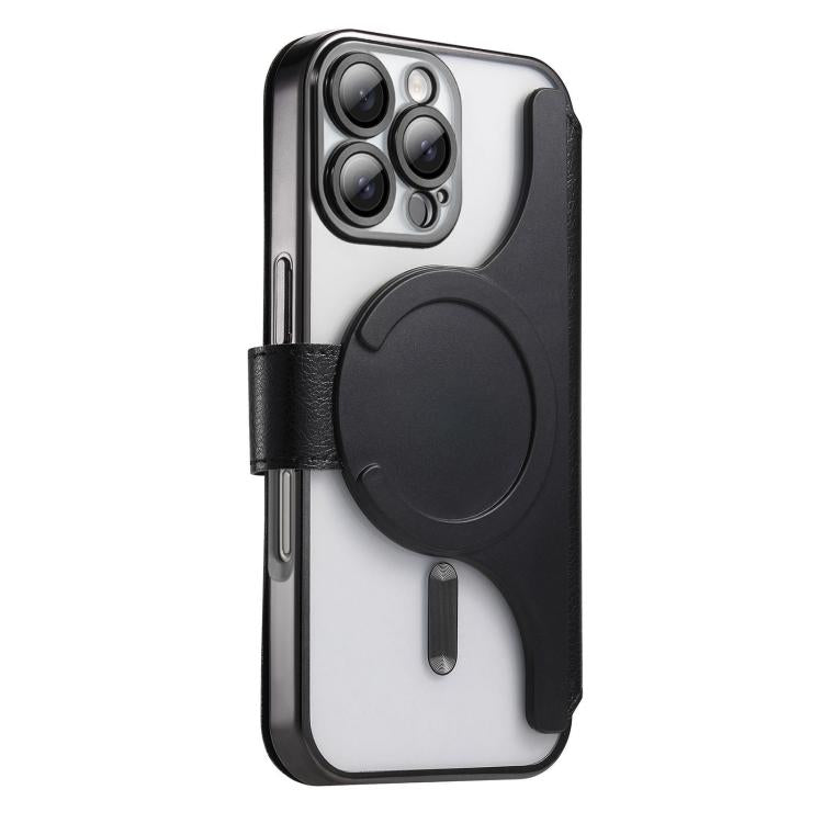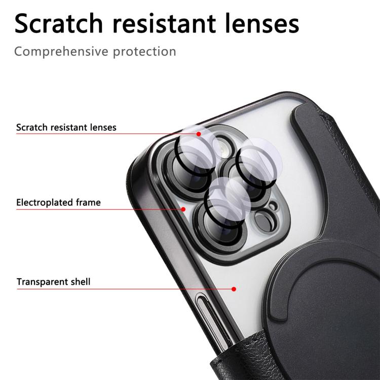 For iPhone 14 Pro Splitable Electroplated MagSafe RFID Anti-theft Leather Phone Case with Lens Film(Black)
