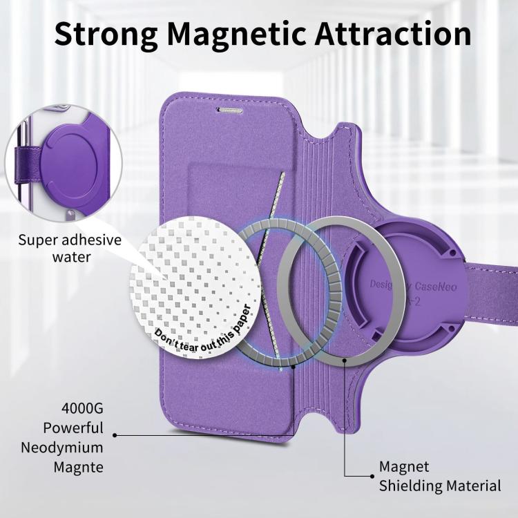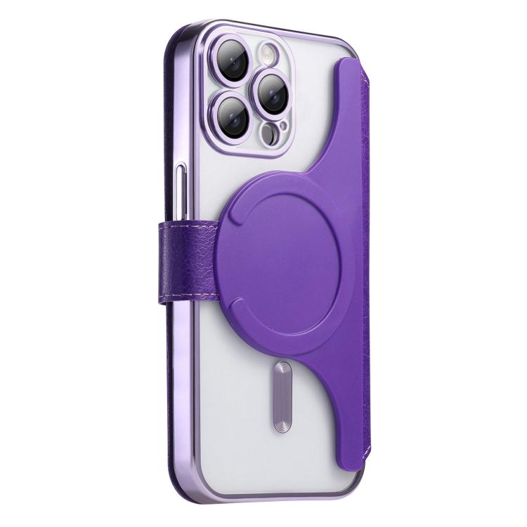 For iPhone 14 Pro Splitable Electroplated MagSafe RFID Anti-theft Leather Phone Case with Lens Film(Purple)