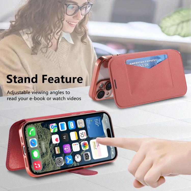 For iPhone 14 Pro Splitable Electroplated MagSafe RFID Anti-theft Leather Phone Case with Lens Film(Red)