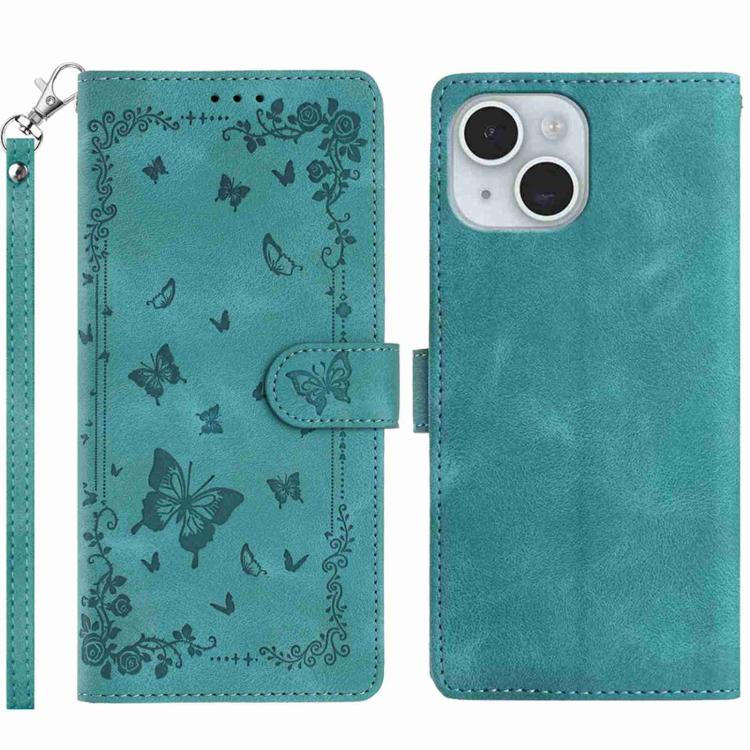 For iPhone 14 Secret Garden Butterfly Pattern Leather Phone Case(Green)