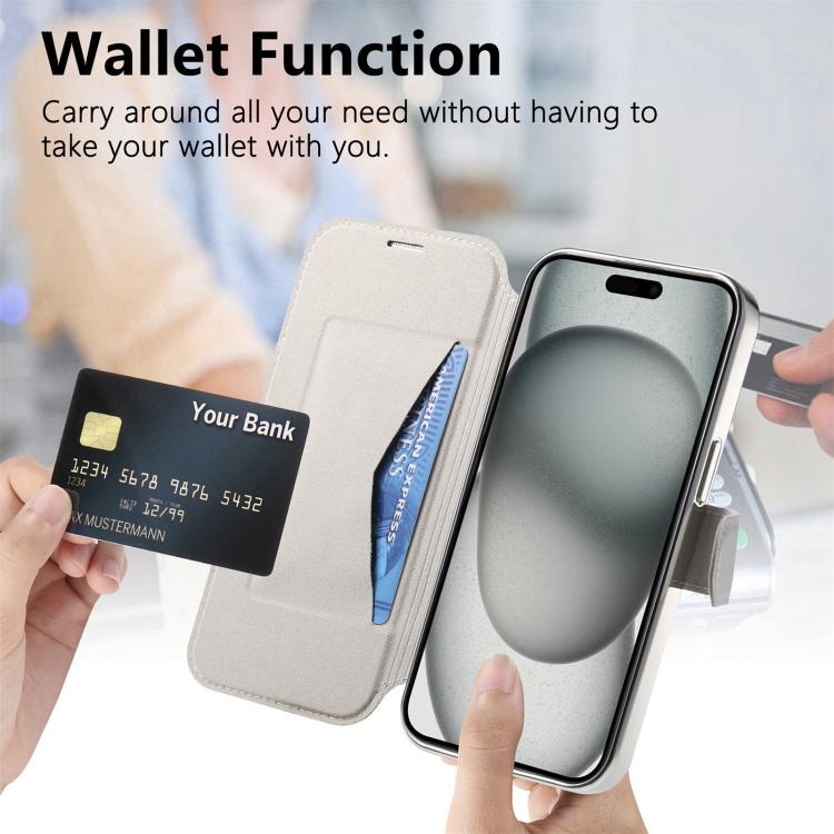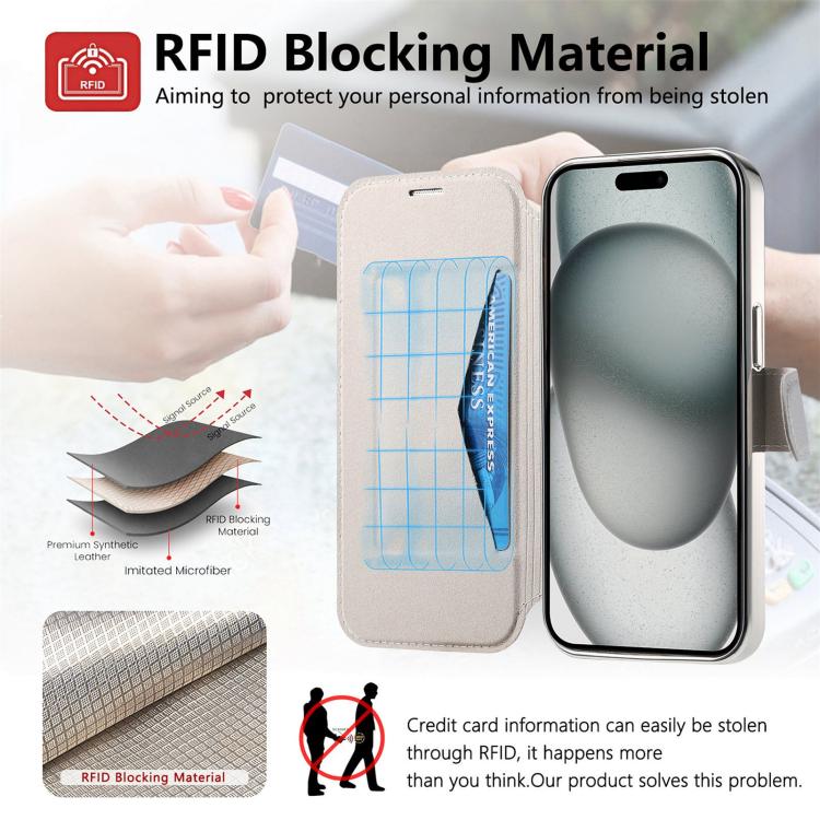 For iPhone 14 Splitable Electroplated MagSafe RFID Anti-theft Leather Phone Case with Lens Film(Silver)