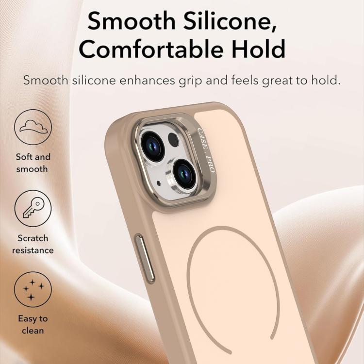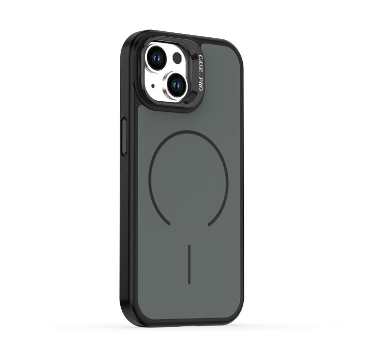 For iPhone 15 Bright Color Contrast Skin-feel Camera Bracket Magsafe Phone Case(Black)