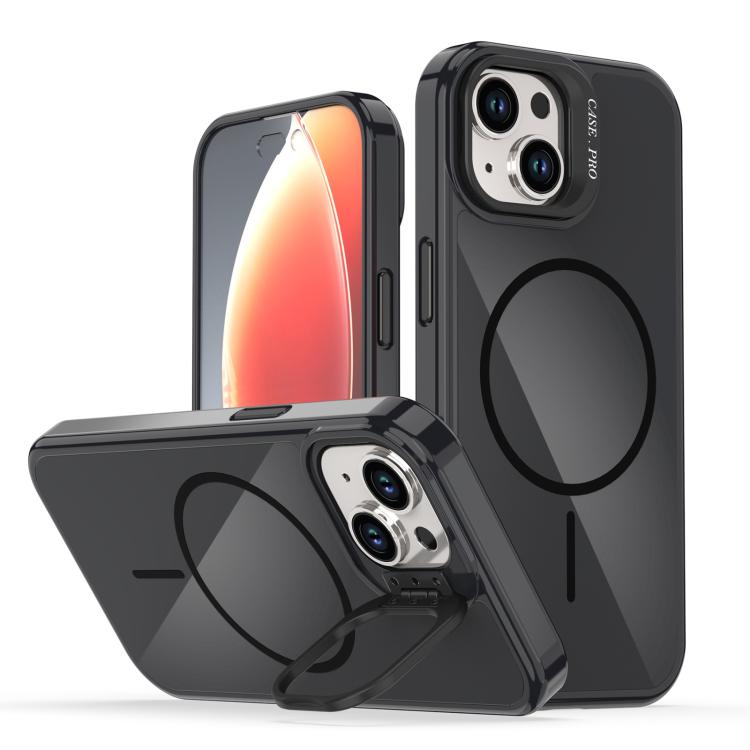 For iPhone 15 Bright Color Imitation Camera Bracket Magsafe Phone Case(Midnight Black)