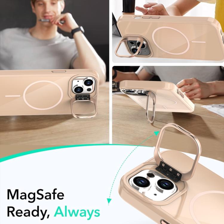 For iPhone 15 Bright Color Imitation Camera Bracket Magsafe Phone Case(Pink)