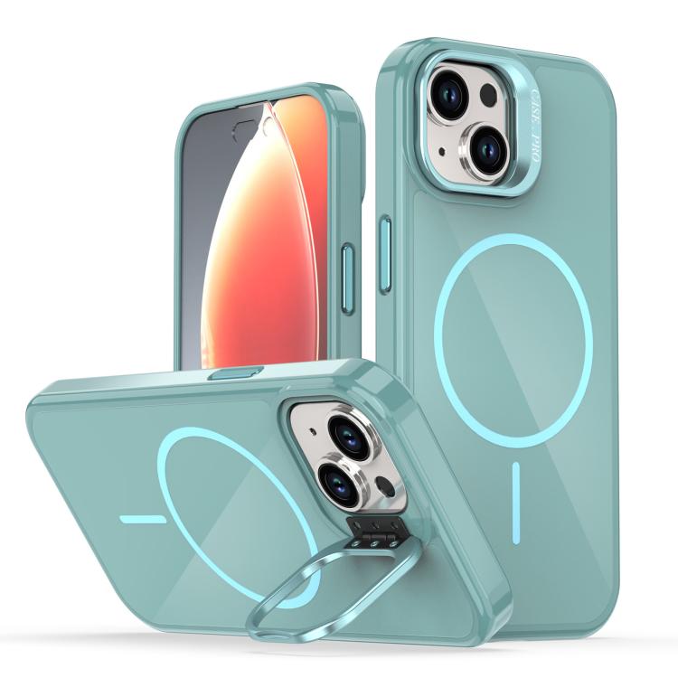For iPhone 15 Bright Color Imitation Camera Bracket Magsafe Phone Case(Riptide Blue)
