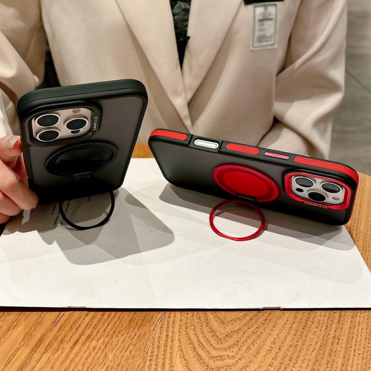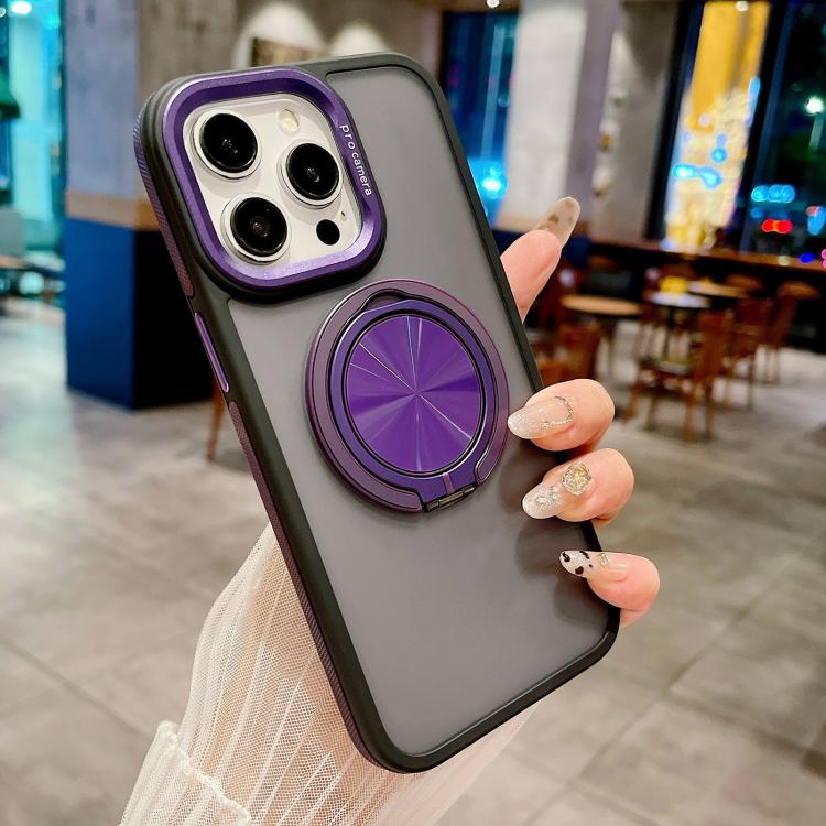 For iPhone 15 Skin-feel Two-color Edge Strips 360 MagSafe Holder Phone Case(Purple)