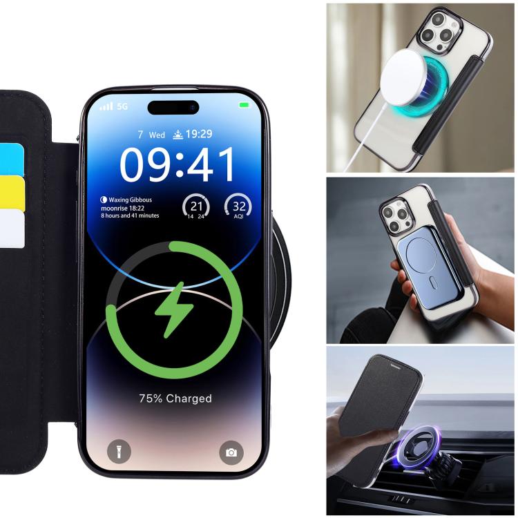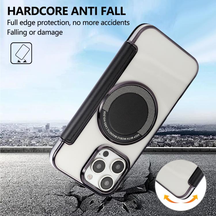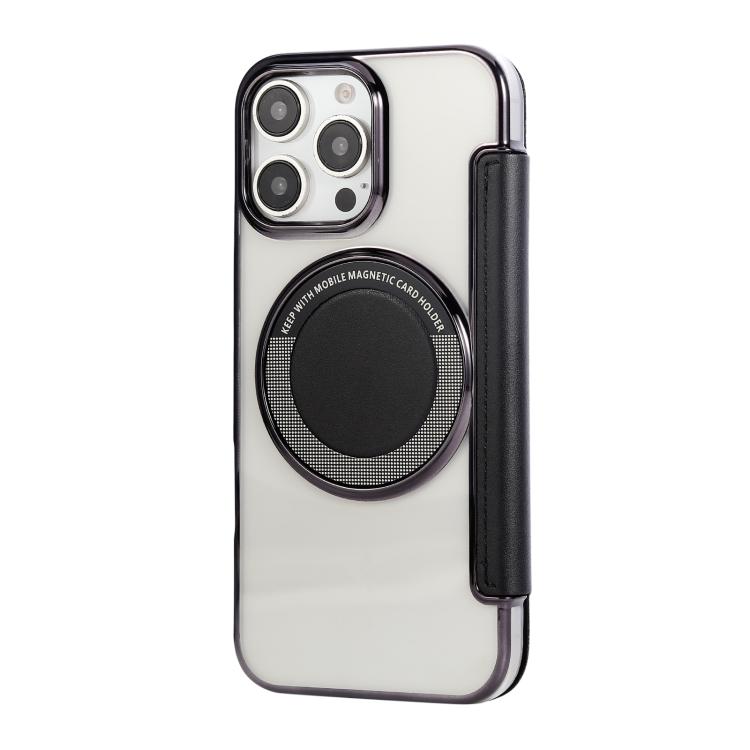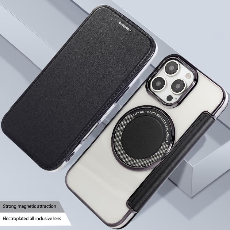 For iPhone 16 Pro Ultra-thin Magnetic Plating Vegan Leather Phone Case(Black)