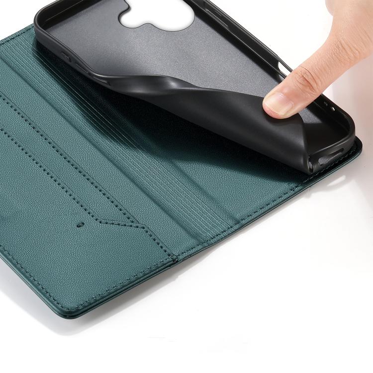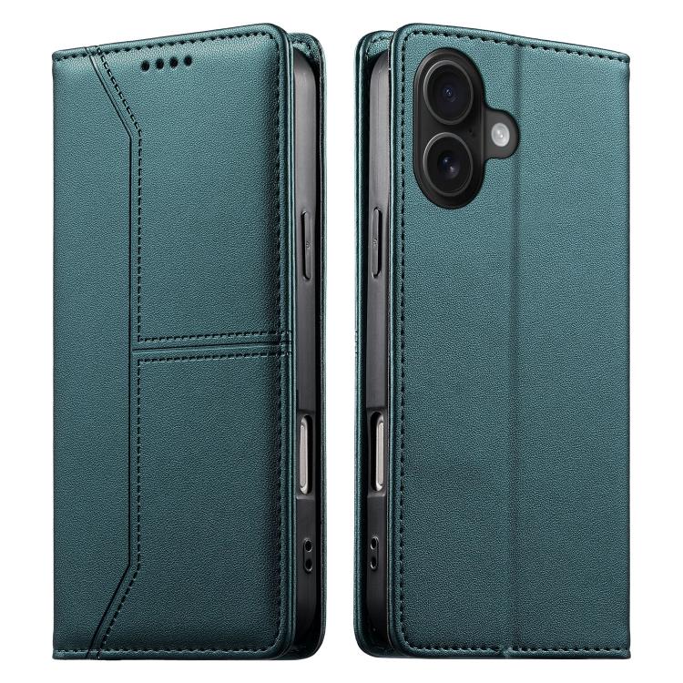For iPhone 16 Stitched Line Magnetic RFID Vegan Leather Phone Case(Green)