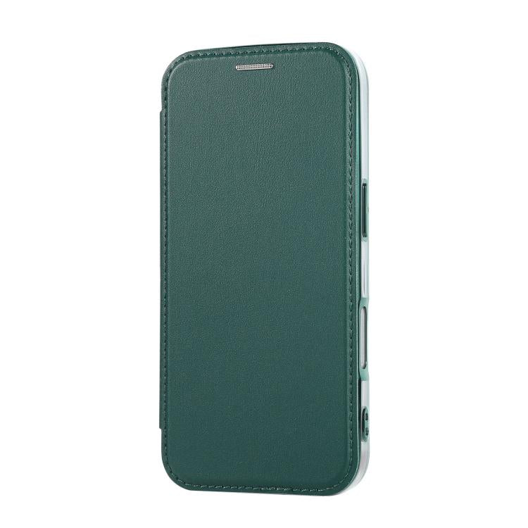 For iPhone 16 Ultra-thin Rotation Holder Magnetic Plating Vegan Leather Phone Case(Blackish Green)