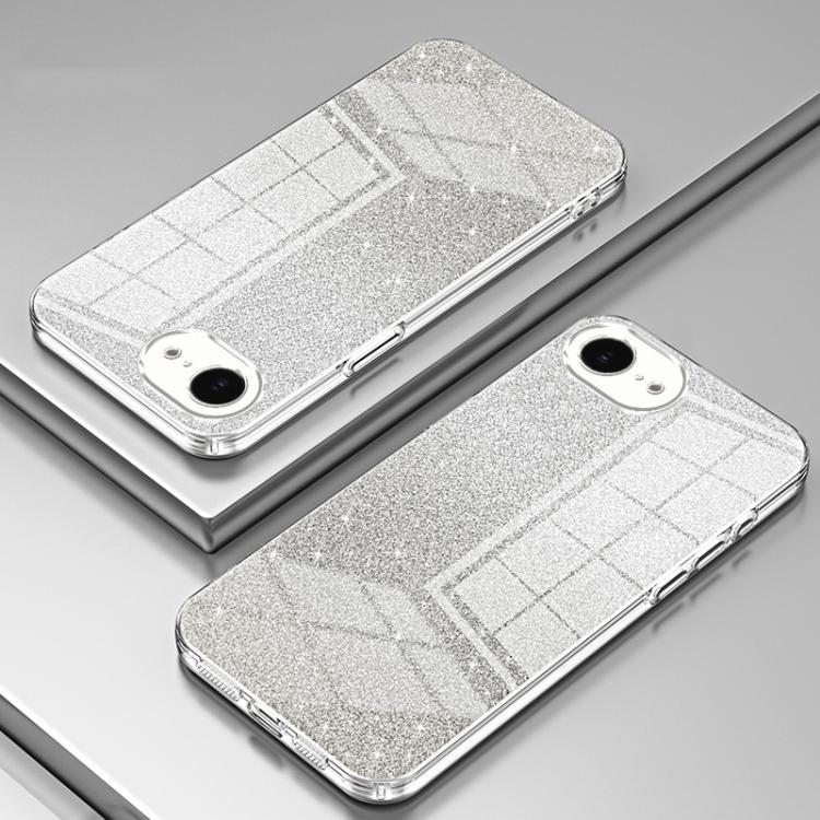 For iPhone 16e Gradient Glitter Powder Electroplated Phone Case(Transparent)