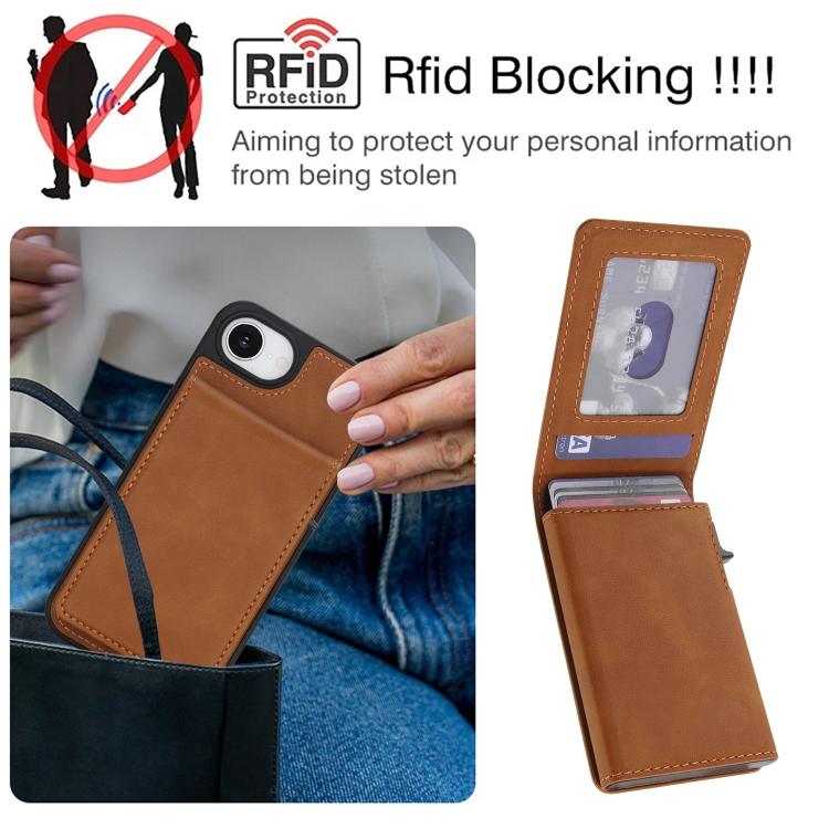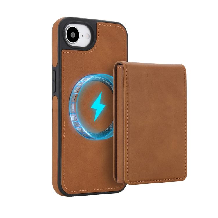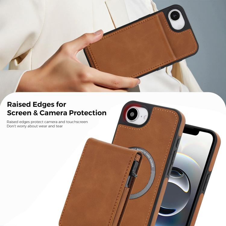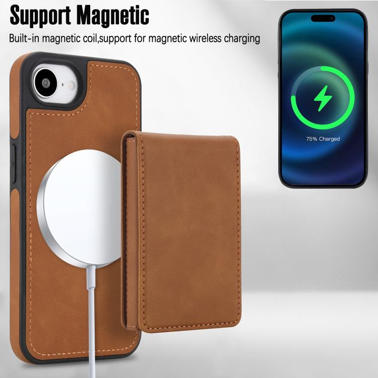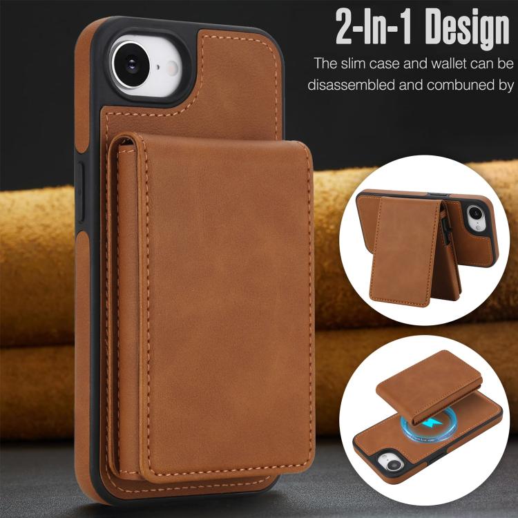 For iPhone 16e Retro Faux Leather Detachable Spring Loaded Card Bag Magnetic RFID Phone Case(Brown)