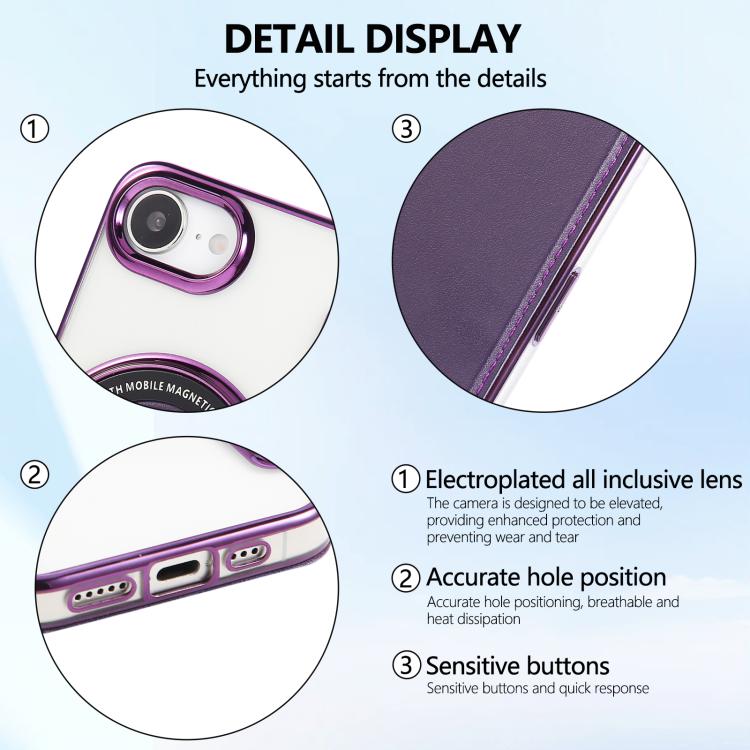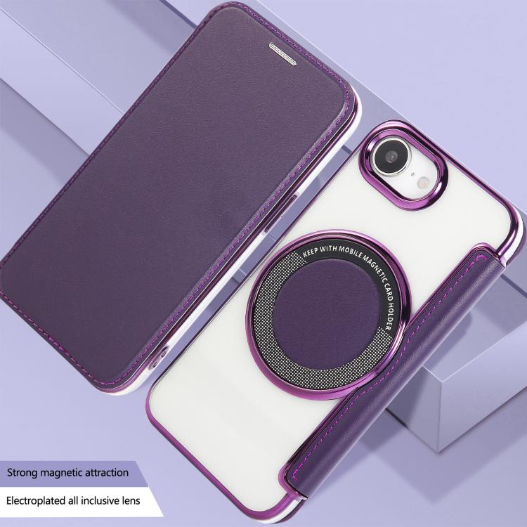For iPhone 16e Ultra-thin Magnetic Plating Vegan Leather Phone Case(Purple)