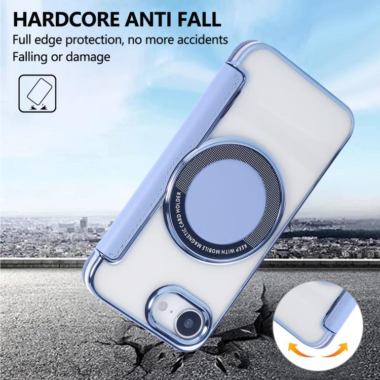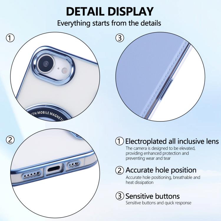 For iPhone 16e Ultra-thin Magnetic Plating Vegan Leather Phone Case(Sierra Blue)